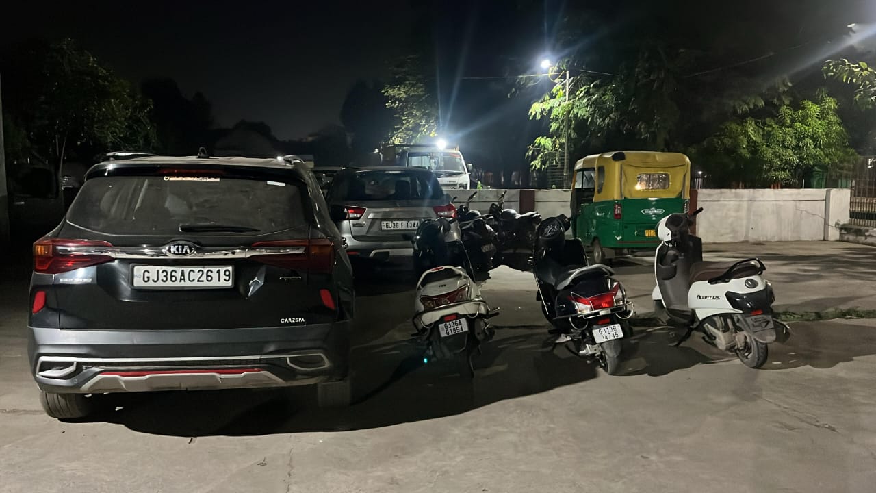 રૂ.૨.૦૮લાખ રોકડા, ૧૧ મોબાઇલ, એક કાર, ત્રણ બાઇક, વિદેશી દારૂની ત્રણ અડધી બે આખી બોટલ સહિત ૧૦.૪૨ લાખનો મુદ્દામાલ જપ્ત કરતી એ ડિવિઝન પોલીસ.