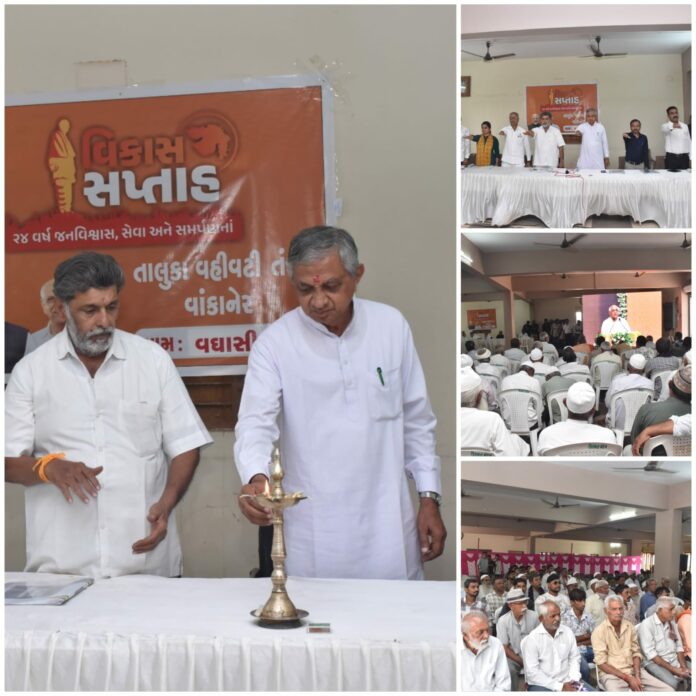 મોરબી જીલ્લામાં વિકાસ સપ્તાહ અંતર્ગત કેબિનેટ મંત્રી કુંવરજીભાઈ બાવળીયાના અધ્યક્ષસ્થાને વાંકાનેર તાલુકાના વઘાસિયા ગામ ખાતે વિશેષ કાર્યક્રમ યોજાયો હતો.