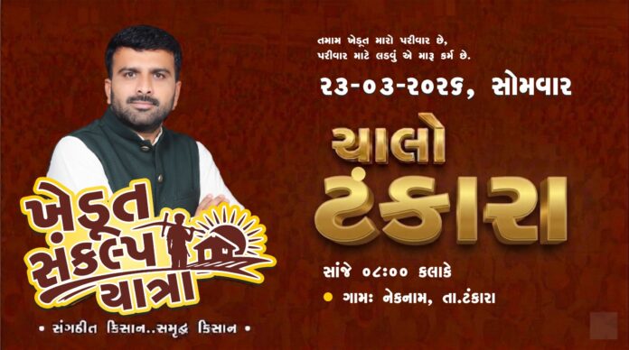 ટંકારા તાલુકાના નેકનામ ગામે આજે રાત્રે મહત્વપૂર્ણ ખેડૂત સભાનું આયોજન કરવામાં આવ્યું છે, જેમાં ખેડૂતોના મુદ્દાઓને લઈ ચર્ચા અને સંકલ્પનો સંદેશ આપવામાં આવશે.