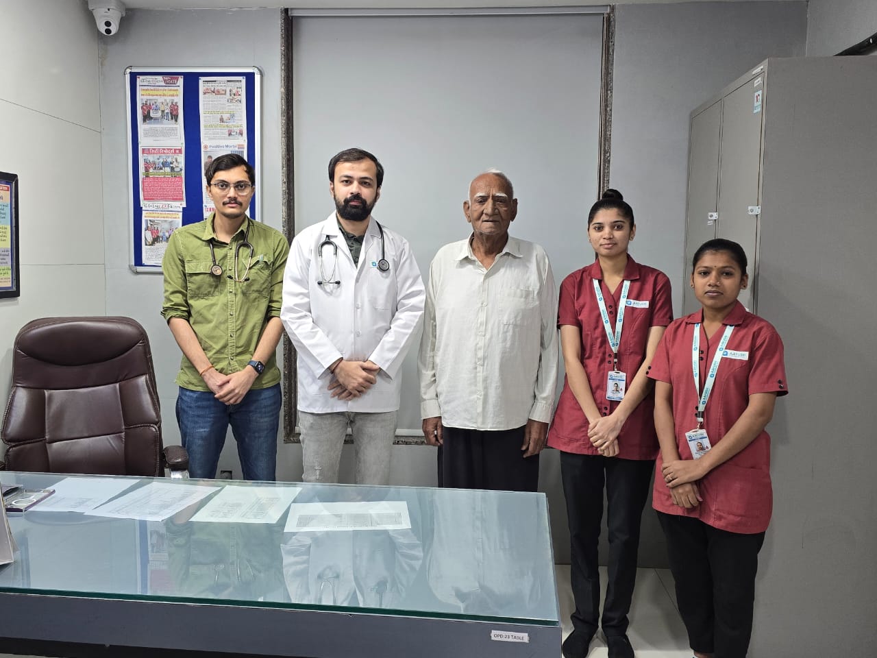 24 માર્ચ, 2026 ના રોજ એક 85 વર્ષના વયોવૃદ્ધ દર્દી આયુષ હોસ્પિટલના ઈમરજન્સી વિભાગમાં સંપૂર્ણ બેભાન અવસ્થામાં આવ્યા, ત્યારે ડો.સત્યજીતસિંહ જાડેજા સાહેબ દ્વારા તપાસ કરતા જણાયું કે દર્દીને લોહીની 4-5 ઉલ્ટીઓ થઈ હતી અને એના માટેનુ જરૂરી ઓપરેશન એ દિવસે જ કરાવેલું હતું, દર્દી ના હ્રદયની મુખ્ય બે નળીઓ મા બ્લોક આવેલુ હતુ, દર્દીના મગજ મા લોહી નીકળેલુ છે, લિવર પર ડેમેજ થયેલુ છે, કિડની પર ડેમેજ થયેલુ છે, બી.પી ખૂબજ ઓછુ છે, ઓક્સિજન લેવલ ખૂબજ ઓછુ છે. આમ દર્દી ની અતિ નાજુક સ્થિતિને ધ્યાનમાં લેતા તાત્કાલીક તેમને ડો.સત્યજીતસિંહ જાડેજા સાહેબની સારવાર હેઠળ આયુષ હોસ્પિટલ ના આઈ.સી.યુ. વિભાગમા દાખલ કરવામાં આવ્યા, આમ વયોવૃદ્ધ દર્દીને આટલુ જીવન નું જોખમ હોવા છતા તેમના સચોટ નિદાન અને સારવાર ના પગલે દર્દીનો જીવ બચી ગયો અને માત્ર એક અઠવાડિયામાં તેમની હોસ્પિટલ માથી ચાલતા પગે રજા કરવામાં આવી હતી, આથી દર્દી તેમજ તેમના સગાઓ દ્વારા આયુષ હોસ્પિટલ અને ડો.સત્યજીતસિંહ જાડેજા નો ખુબજ આભાર માનવામાં આવ્યો હતો, આમ જીવન માટે ની લડાઈમાં વધુ એક દર્દીને નવુ જીવન આપવામાં આવ્યું હતુ.