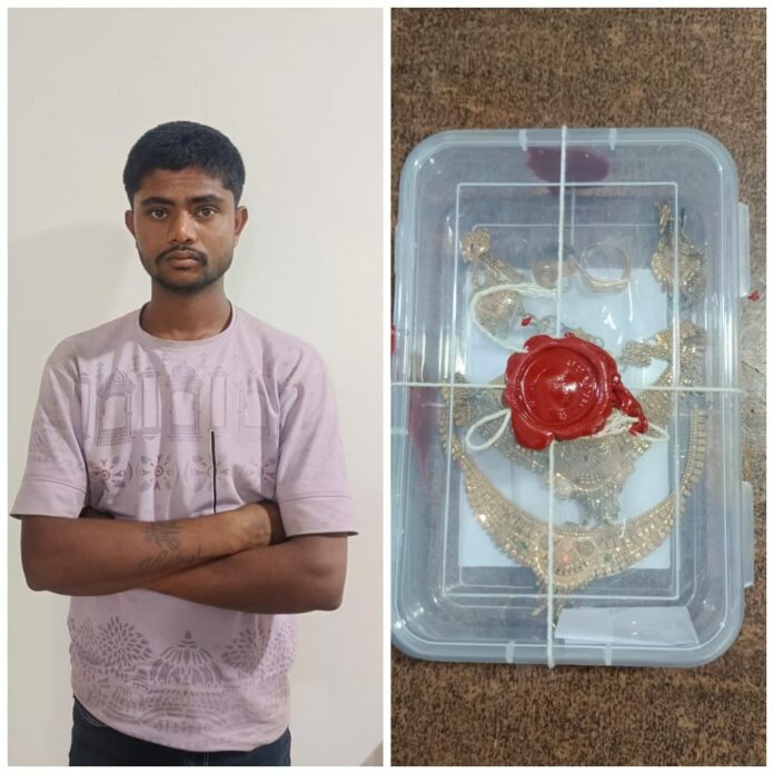 હળવદ પોલીસ સ્ટેશનમાં ગત તા.૧૧/૦૨/૨૦૨૬ ના રોજ ઘરફોડ ચોરીનો ગુનો દાખલ થયેલ હોય જેમાં ફરીયાદી સુરેશભાઇ કાનજીભાઇ મકવાણા રહે ગામ ટીકર(રણ) તા.હળવદ વાળાના રહેણાંક મકાનમાંથી તા. ૬ અને ૭ ફેબ્રુઆરીના રોજ કોઇ અજાણ્યો ઇસમ સોનાના અલગ અલગ દાગીનાઓ જેની કુલ કિ.રૂ ૩.૯૪,૦૫૭ /- જેટલી ગણી શકાય તે ચોરી કરી લઇ ગયેલ હોવાની ફરીયાદ જાહેર કરેલ જે ગુનો ડિટેકટ કરવા હળવદ પોલીસ મથકના પીઆઇ આર.ટી.વ્યાસે અત્રેના સર્વેલન્સ ટીમને સુચના અને માર્ગદર્શન આપેલ હોય જે અનુસંધાને સર્વેલન્સ ટીમ ગુનો ડિટેકટ કરવા પ્રયત્નશીલ હતા દરમ્યાન મળેલ બાતમીના આધારે આરોપી વિશાલ વિશાલ રમેશભાઇ ખાંભડીયા ઉવ.૨૧ રહે ગામ ટીકર (રણ) તા.હળવદ વાળા પાસેથી આ કામે ચોરીમાં ગયેલ અસલ તમામ મુદામાલ સોનાના દાગીનાઓ જેનુ કુલ વજન આશરે સાડા પાંચ તોલા જેની કિ.રૂ.૩,૯૪,૦૫૭/- ના મુદામાલ સાથે પકડી આરોપી વિરુધ્ધ કાયદેસરની કાર્યવાહી કરવામાં આવેલ છે.