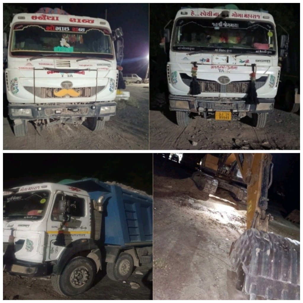 વાંકાનેર તાલુકા પોલીસ મથકના ઇન્ચાર્જ પીઆઇ એચ.એ. જાડેજાની આગેવાનીમાં પોલીસ ટીમને ચોક્કસ બાતમી મળી કે, તાલુકાના ઓળ ગામની હળદર ધાર વિસ્તારમાં ગેરકાયદેસર ખનન થાય છે, જેથી વાંકાનેર તાલુકા પોલીસ અને ખાણ-ખનીજ વિભાગે સંયુક્ત કાર્યવાહી હાથ ધરી હતી. જેમાં સંયુક્ત ટીમે સ્થળ પર દરોડો કરતા, ખનીજ ભરેલા ટાટા કંપનીના ત્રણ ડમ્પર રજી.નં. જીજે-૩૬-એક્સ-૯૧૫૩, જીજે-૩૬-એક્સ-૮૮૦૪, જીજે-૩૬-વી-૯૯૪૯ તેમજ સાની કંપનીનું એક એક્સકવેટર સહિત કુલ રૂ. ૪ કરોડ ૧૦ લાખનો મુદામાલ કબ્જે કરવામાં આવ્યો હતો. આ કાર્યવાહી દરમિયાન વાંકાનેર તાલુકા પોલીસ સ્ટાફ તથા મોરબી ખાણ-ખનીજ વિભાગની ટીમ જોડાઈ હતી. હાલ પોલીસે વધુ તપાસ હાથ ધરી ખનીજ માફિયાઓ સામે કડક કાર્યવાહી કરવાની દિશામાં ચક્રો ગતિમાન કર્યા છે.
