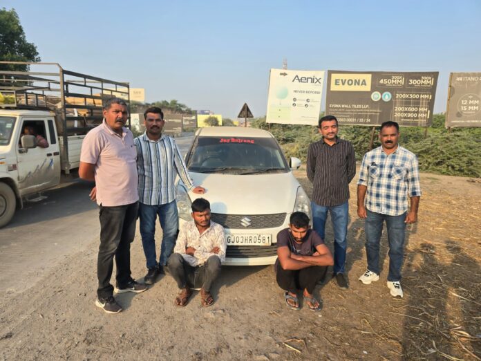 મળતી માહિતી અનુસાર, ગત તા.૨૫/૧૦/૨૦૨૫ ના રોજ મોરબી લખધીરપુર રોડ ઉપર હોલીશ વિટ્રીફાઇડ કારખાના પાસે RJ14 GQ-4374 નંબરના ટ્રક ટ્રેલરનો ચાલાક પોતાનું ટ્રક પાર્ક કરી ટ્રકની કેબીનમાં સૂતો હતો. ત્યારે કોઇ અજાણ્યા આરોપીઓએ ટ્રકની ડીઝલ ટાંકીના ઢાંકણાનો લોક તોડી ટાંકીમાંથી આશરે ૧૪૦ લીટર જેટલુ ડીઝલ ચોરી કરી લઇ ગયો હતો. જે ડીઝલ ચોરીનો ગુનો કરી આરોપીઓ નાશી ગયા હતા. જે બાબતે, મોરબી તાલુકા પોલીસ સ્ટેશન ખાતે ગુન્હો નોંધાયો હતો. જેને લઇ મોરબી એલ.સી.બી. દ્વારા અલગ અલગ ટીમો બનાવવામાં આવી હતી. જેમાં એક ટીમ બનાવ સ્થળની આજુબાજુના વિસ્તારમાં સી.સી.ટી.વી. ચેક કરવા તેમજ બીજી ટીમે અગાઉ આવા પ્રકારના ગુનાઓમાં પકડાયેલ આરોપીઓને ચેક કરવા અંગેની કામગીરી સોપવામાં આવી હતી. આ ગુન્હાના આરોપીઓને શોધી કાઢવા આજરોજ તા.૧૧/૧૧/૨૦૨૫ ના રોજ પેરોલ ફર્લો સ્કોડની ટિમ પેટ્રોલીંગમાં હતી. દરમિયાન તેઓને બાતમી મળી હતી કે, આ ડીઝલ ચોરીનો ગુનો આચરનાર સ્વીફ્ટ ગાડી નંબર-GJ-03-HR-0581 નો ચાલક હરેશભાઇ વિનોદભાઇ ઉર્ફે વિનુભાઇ બાલસાણીયા તથા જીજ્ઞેશભાઇ ઉર્ફે જુગો ભરતભાઇ ખેર બંનેએ આચરેલ હોવાની અને હાલ તેઓ મોરબી જુના ઘુંટુંરોડ ઉપર આવેલ સ્મશાન પાસે ગાડી સાથે ઉભેલ હોવાની ચોક્કસ હકીકત મળતા તે આધારે તપાસ કરતા સ્થળ પરથી ઈસમો એક સ્વીફ્ટ ગાડીની રૂ. ૩,૦૦,૦૦૦/- તથા ડિઝલ ચોરી કરવામા ઉપયોગ કરેલ ૭ ખાલી કેરબાની કિંમત રૂ. ૩૫૦/- તથા ૨ પ્લાસ્ટીકની પાઇપો રૂ.૧૦૦/- મળી કુલ રૂ. ૩,૦૦,૪૫૦/- નો મુદામાલ સાથે હસ્તગત કરી મોરબી તાલુકા પોલીસને સોંપવામાં આવ્યો છે.