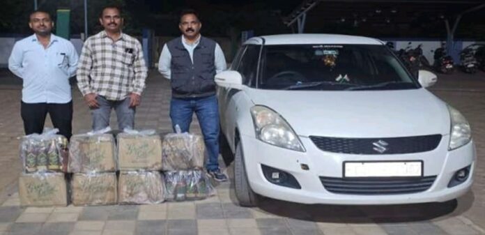 હળવદ તાલુકાના જુના દેવળીયા ગામે સ્કૂલ પાછળના જાહેર રોડ પરથી મોરબી ક્રાઇમ બ્રાંચે સ્વીફટ કારમાં હેરાફેરી કરાતો વિદેશી દારૂનો જથ્થો ઝડપી લીધો હતો. જ્યારે કારચાલક પોલીસ કાર્યવાહી જોઈ કાર રેઢી મૂકીને ફરાર થઈ ગયો હતો. આ સાથે પોલીસે વિદેશી દારૂની ૧૪૪ બોટલ તથા કાર સહિત કુલ રૂ.૪,૫૮,૪૦૦/- નો મુદામાલ કબ્જે કરી આગળની તપાસ ચલાવી છે.