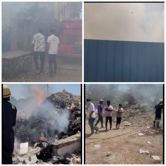 મોરબીમાં ગરમીના કારણે ઘુંટુ ગામે પ્લોટ વિસ્તારમાં અને લોહાણાપરા શેરી-૨ માં કચરામાં આગ લાગી હતી. ફાયર વિભાગે તાત્કાલિક પહોંચી આગ પર કાબુ મેળવી મોટી દુર્ઘટના ટાળી હતી.
