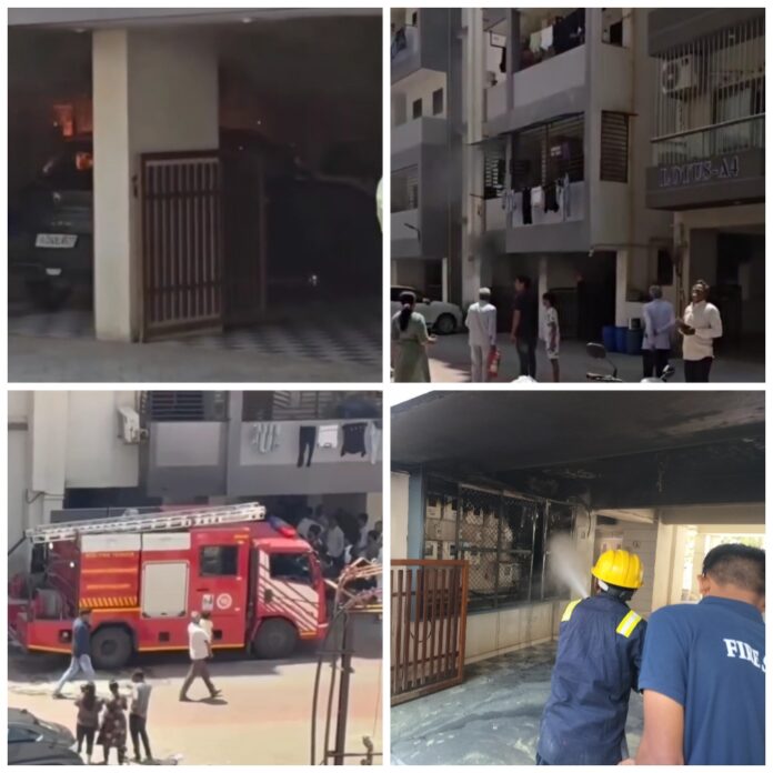 મોરબી શહેરના રવાપર-ઘુનડા રોડ પર આવેલી લોટસ ૧૫૮ સોસાયટીમાં આગ લાગવાનો બનાવ સામે આવ્યો હતો. સોસાયટીના એ-૩ એપાર્ટમેન્ટના મીટર બોક્સમાં અચાનક આગ ભભૂકી ઉઠી હતી, જેના કારણે વિસ્તારમાં થોડીવાર માટે ભયનો માહોલ સર્જાયો હતો. આ ઘટનાની જાણ મોરબી ફાયર કંટ્રોલ રૂમને બપોરે અંદાજે ૧૧.૫૦ વાગ્યે થતા જ ફાયર બ્રિગેડની ટીમ તાત્કાલિક ઘટના સ્થળે પહોંચી ગઈ હતી. ફાયર સ્ટાફે ઝડપી કામગીરી હાથ ધરી આગને વધુ ફેલાય તે પહેલાં જ કાબૂમાં લઈ લીધી હતી. પ્રાથમિક તપાસ મુજબ મીટર બોક્સમાં શોર્ટ સર્કિટના કારણે આગ લાગી હોવાની શક્યતા વ્યક્ત કરવામાં આવી છે. સદનસીબે આ બનાવમાં કોઈ જાનહાનિ કે મોટુ મિલકતનું નુકસાન નોંધાયું નથી.