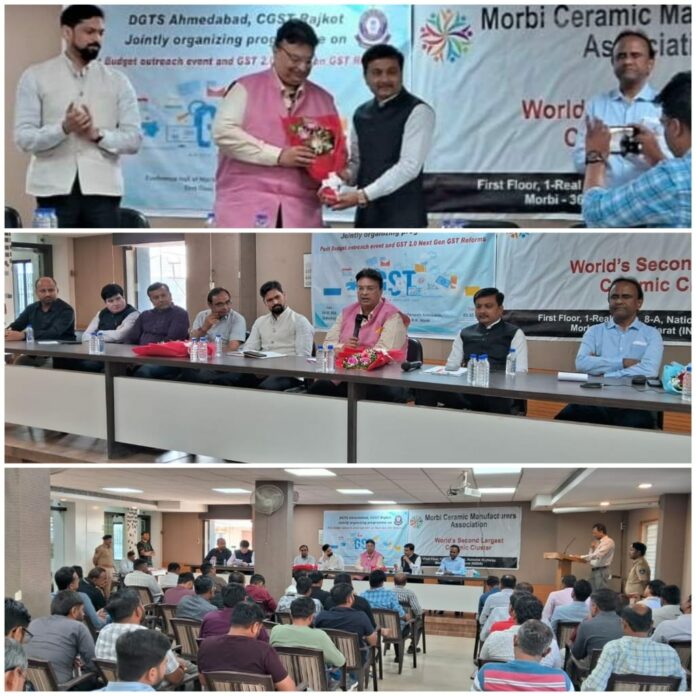 મોરબી સિરામિક મેન્યુફેક્ચરર્સ એસોસિએશન દ્વારા DGTSના ઉચ્ચ અધિકારીઓની ઉપસ્થિતિમાં જીએસટી સંબંધિત મુદ્દાઓ પર વિશેષ સેમિનાર યોજાયો હતો. જેમાં સિરામિક ઉદ્યોગના એક્સપોર્ટ, ઈ-વે બિલ અને જીએસટી દર ઘટાડા સહિતના મુદ્દાઓ પર વિસ્તૃત ચર્ચા કરવામાં આવી હતી.