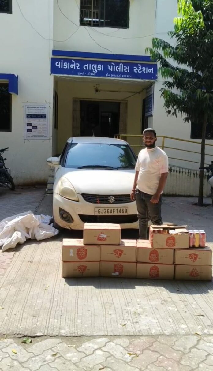 મળતી માહિતી અનુસાર, વાંકાનેર તાલુકા પોલીસની ટીમ ઢુવા ચોકી વિસ્તારમા પેટ્રોલીંગમા હતી. તે દરમિયાન તેઓને મળેલ બાતમીનાં આધારે, વાંકાનેર તાલુકાના ઢુવા ચોકડી પાસે રોડ પરથી મારૂતી સુજુકી કંપનીની GJ-36-AF-1469 નંબરની સફેદ કલરની સ્વીફટ ડીજાયર કાર નીકળતા તેનો પીછો કરી કારમાથી ભારતીય બનાવટના માઉન્ટસ ૬૦૦૦ બીયરના રૂ.૩૦,૦૦૦/-ની કિંમતના ૨૪૦ ટીન મળી આવતા બિયર તથા કાર મળી કુલ રૂ.૩,૩૦,૦૦૦/-ના મુદામાલ સાથે કાર ચાલકની બાજુમાં બેસેલ જામનગરના લાલજીભાઈ પ્રવિણભાઈ ડાભીને પકડી પાડવામાં આવ્યો છે. જયારે કાર ચાલક અલ્પેશ ઉર્ફે ભોલો રાજેન્દ્રસિંહ ચાવડા નાશી જતા બંન્ને આરોપીઓ વિરૂધ્ધ પ્રોહિબિશન એક્ટ મુજબનો ગુન્હો નોંધવામાં આવ્યો છે. તેમજ પકડાયેલ આરોપીની પુછપરછ દરમ્યાન નાસી જનાર કાર ચાલક અલ્પેશ ઉર્ફે ભોલો રાજેન્દ્રસિંહ ચાવડા નાસી જતા આરોપીને શોધી કાઢવા ચક્રો ગતીમાન કરવામાં આવ્યા છે.