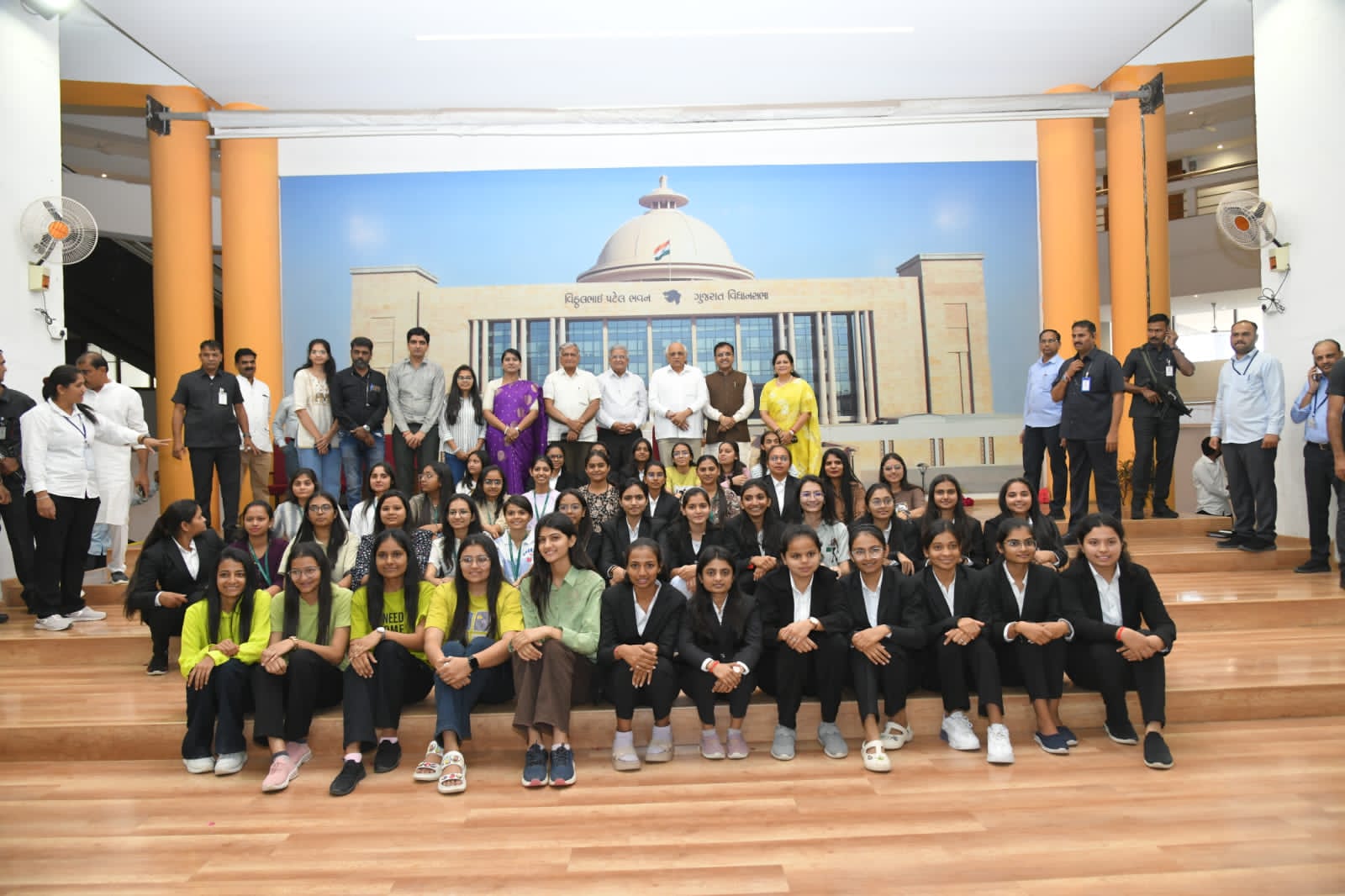 નવયુગ કોલેજના વિદ્યાર્થીઓએ ગુજરાત વિધાનસભાની મુલાકાત લઈને લોકશાહી પ્રક્રિયાનો જીવંત અને પ્રેરણાદાયી અનુભવ કર્યો હતો. ટંકારા–પડધરી વિસ્તારના ધારાસભ્ય દુર્લભજીભાઈ દેથરીયાના સહયોગથી આ શૈક્ષણિક પ્રવાસનું આયોજન કરવામાં આવ્યું હતું.