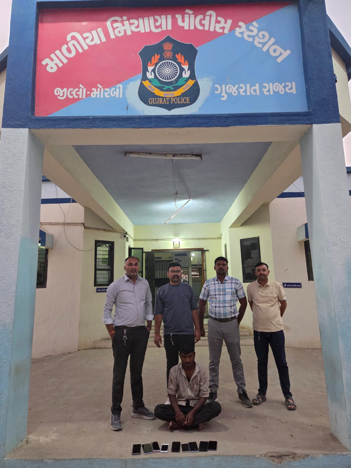 માળીયા(મી) પોલીસે એક આરોપીની ધરપકડ કરી ૯ મોબાઇલ જપ્ત કર્યા.