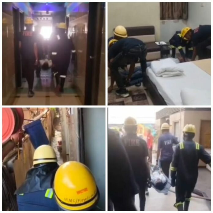 મોરબી ત્રાજપર ચોકડી નજીક આવેલી જી.કે. હોટલ ખાતે આગ લાગી હોવાની પરિસ્થિતિ સર્જાઈ હોય તેવી મોકડ્રીલ મોરબી મહાનગરપાલિકાની ફાયર એન્ડ ઈમરજન્સી શાખા દ્વારા યોજાઈ હતી. જેમાં ફાયર ટીમે તાત્કાલિક આગ પર કાબૂ મેળવી પ્રથમ માળે ફસાયેલા ગેસ્ટને સલામત બહાર કાઢ્યા હતા. બાદમાં આ સમગ્ર કાર્યવાહીને મોકડ્રીલ હોવાનું જાહેર કરવામાં આવ્યું હતું. સાથે જ ફાયર વિભાગ દ્વારા હોટલ સ્ટાફ અને શહેરીજનોને ફાયર સેફ્ટી અંગે માર્ગદર્શન આપવામાં આવ્યું હતું.