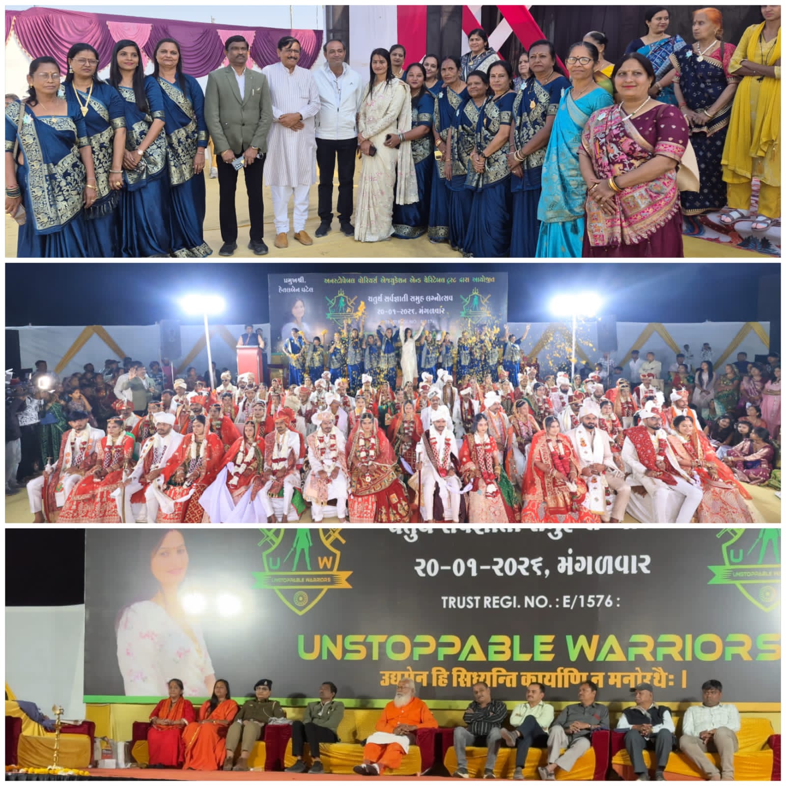મોરબી શહેરમાં સતત સેવાકીય પ્રવૃત્તિઓ દ્વારા પોતાની અલગ ઓળખ ઉભી કરનાર અનસ્ટોપેબલ વોરિયર્સ ગ્રુપ દ્વારા ચતુર્થ સર્વજ્ઞાતિય સમૂહ લગ્નોત્સવનું ભવ્ય આયોજન કરવામાં આવ્યું હતું. આ સમૂહ લગ્નોત્સવ ગત તારીખ ૨૦ જાન્યુઆરીના રોજ ખોખરાધામ મંદિર ખાતે યોજાયા હતા. જેમાં ૪૧ નવદંપતિઓએ વૈવાહિક જીવનમાં પ્રભુતામાં પગલા માંડ્યા હતા.