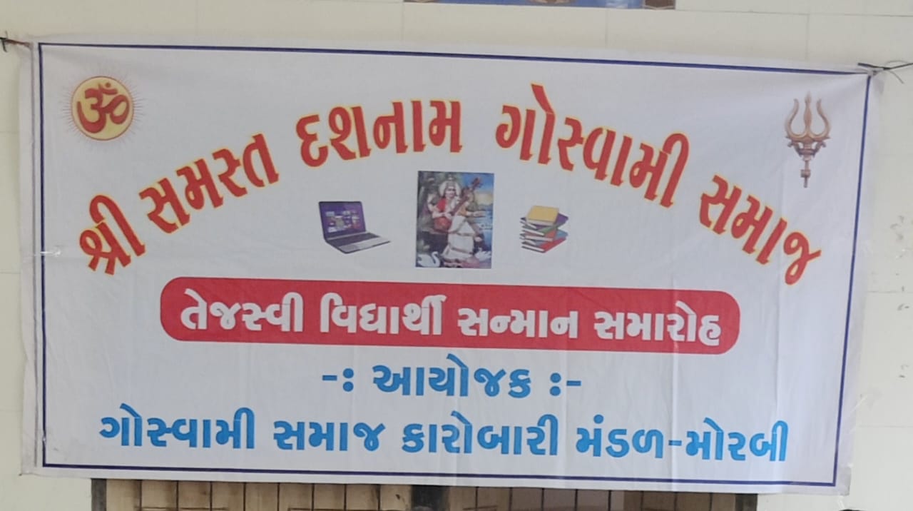મોરબી સમસ્ત દશનામ ગોસ્વામી સમાજ ટ્રસ્ટ દ્વારા ગોસ્વામી સમાજનાં વિદ્યાર્થી સન્માન સમારોહનું આયોજન કરવામાં આવ્યું છે. જેમાં કેજી થી કોલેજ સુધીના દરેકમાં વર્ષ ૨૦૨૪-૨૦૨૫ માં પાસ થયેલા વિધાર્થીનો સમાવેશ કરવામાં આવ્યો છે. જેમાં વિધાર્થીઓને શિલ્ડ તેમજ પ્રોત્સાહિત ઇનામ આપવામાં આવશે.