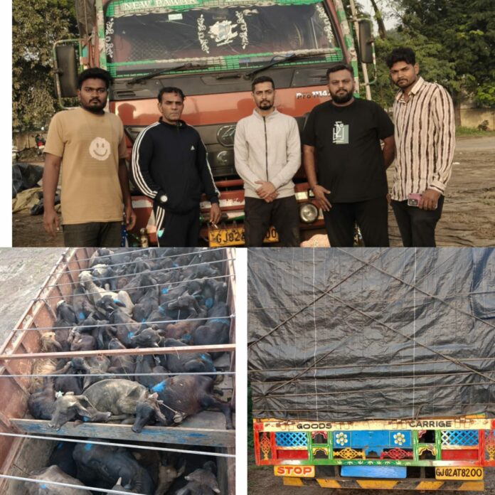 મળતી માહિતી અનિસાર, મોરબી વિશ્વ હિન્દુ પરિષદ શહેરો પ્રમુખ કમલેશભાઈ બોરીચા તથા અખિલ વિશ્વ ગૌ સંવર્ધન પરિષદ દિલ્હી ગુજરાત રાજ્ય ગૌરક્ષા મોરબી રાજકોટ ગૌરક્ષકને બાતમી મળી હતી કે, કચ્છ તરફથી મોરબી થઈને જામનગર એક આઇસર ગાડીમાં જીવોને ભરીને કતલ કરવાના ઇરાદે કચ્છમાંથી ભરીને માળીયા થઈને જામનગર લઈ જવામાં આવી રહ્યા છે. જે માહિતી મળતા જ મોરબી ગૌરક્ષક અને રાજકોટ ગૌરક્ષક વોચમાં બેઠા હતા. ત્યારે મોરબી બાયપાસ બાજુથી GJ-02-AT-8200 નંબરની આઇસર ગાડી આવતા તેને રાજપર ચોકડીએ પોલીસ ચેકપોસ્ટ પાસે રોકાવવાનો પ્રયાસ કરતા ચાલાક ફુલ ઝડપે ટંકારા બાજુ પોતાનું વાહન ભગાડતાં તેનો પીછો કરતા ગૌરક્ષક ઉપર ચાલુ ડ્રાઇવએ માથે ગાડી નાખીને જાનથી મારી નાખવાનો પ્રયાસ કર્યો હતો. જે ગાડી ટંકારા ગામમાં છાપરીથી અંદર એક ખંડર જીનમાં મૂકીને આરોપી ભાગી છૂટ્યો હતો. ત્યારે બનાવની એસ.પી.ને જાણ થતા મોરબી અને રાજકોટ ગૌરક્ષક પોલીસ પ્રશાસનના સંયોગથી ગાડીને કબજે કરીને તેમાં રહેલ ભેસ વર્ગના 70 પાડાને મોરબી અને ટંકારા પોલીસના સહયોગથી બચાવી લેવામાં આવ્યા છે. જે જીવોને રાજકોટ પાંજરાપુરમાં મૂકવામાં આવ્યા છે.
