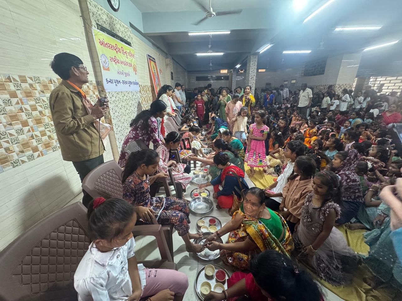 આંતરરાષ્ટ્રીય હિન્દુ પરિષદના સંસ્થાપક ડો.પ્રવિણભાઈ તોગડીયાના માર્ગદર્શન હેઠળ દેશભરના વિવિધ પ્રખંડોમાં આંતરરાષ્ટ્રીય હિન્દુ પરિષદ તથા રાષ્ટ્રીય બજરંગ દળ દ્વારા નવરાત્રીના પાવનપર્વ નિમિતે માઁ જગદંબાની આરાધના ઉપરાંત કન્યા પૂજન તેમજ શસ્ત્ર પૂજનના કાર્યક્રમો યોજાઈ રહ્યા છે. ત્યારે મોરબી જીલ્લા આંતરરાષ્ટ્રીય હિન્દુ પરિષદ તથા મોરબી જીલ્લા રાષ્ટ્રીય બજરંગ દળ દ્વારા આજે તા.૨૮-૯-૨૦૨૫ રવિવારના રોજ સવારે ૯ કલાકે શહેરના જલારામ ધામ ખાતે ૯૧૧ કન્યાઓનું પૂજન તેમજ શસ્ત્ર પૂજન કરવામાં આવ્યુ હતું. જેમાં બજરંગ ગરબી મંડળ, પંચેશ્વરી ગરબી મંડળ, રેલવે કોલોની ગરબી મંડળ, વસંત પ્લોટ ગરબી મંડળ, નવદુર્ગા ગરબી મંડળ, ભવાની ચોક ગરબી મંડળ, પંડિત દીનદયાલ આશ્રય સ્થાન, શક્તિ બાળ મંડળ, બાલિકા ગરબી મંડળ, બુઢા બાવા ગરબી મંડળ સહીતના ગરબી મંડળની બાળાઓ ઉપરાંત હોસ્પીટલના નર્સિંગ સ્ટાફની બહેનો સહીત કુલ ૯૧૧ કન્યાઓનું પૂજન તેમજ શસ્ત્ર પૂજન યોજાયુ હતુ. ઉપસ્થિત દરેક કન્યાઓનો કૃષ્ણસિંહ ઝાલા, વિનોદભાઈ રામજીભાઈ બારા, ગીરીશભાઈ ઘેલાણી, પ્રતાપભાઈ ચગ, ધર્મેન્દ્રભાઈ કાલરીયા, પારસભાઈ ચગ, કીશોરભાઈ ચંડીભમર, હરીશભાઈ રાજા, દીનેશભાઈ પારેખ, પિયુષભાઈ વાઢારા, સી.પી.પોપટ, હસુભાઈ પુજારા, નિર્મિતભાઈ કક્કડ સહીતનાં અગ્રણીઓ દ્વારા લ્હાણી અર્પણ કરવામાં આવી હતી. તેમજ દરેક માટે મહાપ્રસાદ યોજવામાં આવ્યો હતો. કાર્યક્રમમાં ૧૦૦૮ મહામંડલેશ્વર રત્નેશ્વરી દેવી તેમજ આંતરરાષ્ટ્રીય હિન્દુ પરિષદ સૌરાષ્ટ્ર પ્રાંતના મહામંત્રી શશીકાંતભાઈ પટેલ, આંતરરાષ્ટ્રીય હિન્દુ પરિષદ સૌરાષ્ટ્ર પ્રાંતના ઉપાધ્યક્ષ ગીરીશભાઈ ઘેલાણી, મોરબી જીલ્લા અધ્યક્ષ સી.ડી.રામાવત, રાષ્ટ્રીય બજરંગ દળ મોરબી જીલ્લા અધ્યક્ષ નેવીલભાઈ પંડિત, આંતરરાષ્ટ્રીય હિન્દુ પરિષદ મોરબી શહેર અધ્યક્ષ ભાવીનભાઈ ઘેલાણી, રાષ્ટ્રીય બજરંગ દળ મોરબી શહેર અધ્યક્ષ પારસભાઈ ચગ, ધર્મેન્દ્રભાઈ કાલરીયા, લખનભાઈ કક્કડ, નરેન્દ્રભાઈ પાવ, કે.પી.ભાગીયા, સી.પી.પોપટ, કીશોરભાઈ ચંડીભમર, હસુભાઈ પુજારા, કીશોરભાઈ ઘેલાણી, રમણીકભાઈ ચંડીભમર, ચિરાગભાઈ રાચ્છ, નિરવભાઈ હાલાણી, સુનિલભાઈ પુજારા, જયંતભાઈ રાઘુરા, ભાવેશભાઈ બુદ્ધદેવ, જગદીશભાઈ કોટક, હરીશભાઈ રાજા, હરીશભાઈ સોમમાણેક, હીતેશભાઈ જાની, ચંદ્રીકાબેન પલાણ, રઘુવંશી મહિલા મંડળ તથા જલારામ ધામ મહિલા મંડળના બહેનો, જલારામ વેવિશાળ માહિતી કેન્દ્ર, ધીરજલાલ ઠકરાર, પ્રવિણભાઈ કારીયા, વૈદેહી સંત્સંગ મંડળ, દીગુભા ઝાલા, સંગ્રામસિંહ જાડેજા, પપ્પુભાઈ ચંડીભમર,અશોકભાઈ જોશી, રાજુભાઈ વિંધાણી સહીતના અગ્રણીઓએ ઉપસ્થિત રહી કન્યા પૂજન તેમજ શસ્ત્ર પૂજન કર્યુ હતુ. તેમ આંતરરાષ્ટ્રીય હિન્દુ પરિષદ-મોરબી શહેર મંત્રી નિર્મિતભાઈ કક્કડ દ્વારા જણાવવામાં આવ્યું છે.