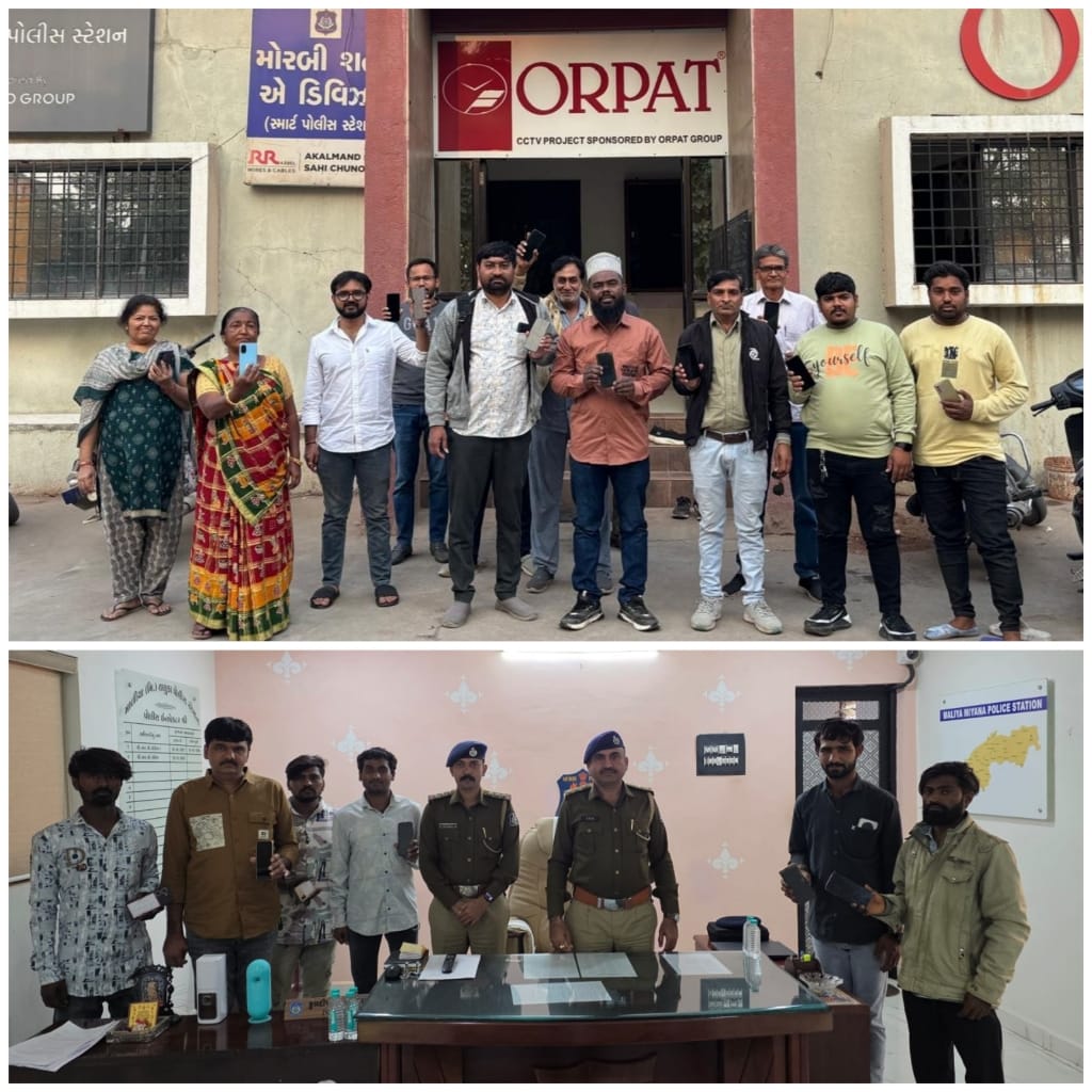 મોરબી જીલ્લા પોલીસ અધિક્ષક મુકેશકુમાર પટેલની પ્રજા કલ્યાણ તથા પ્રજા ઉપયોગી કામગીરી અંગેની સૂચના તેમજ નાયબ પોલીસ અધિક્ષક જે.એમ. આલના માર્ગદર્શન હેઠળ “તેરા તુજકો અર્પણ” કાર્યક્રમ અંતર્ગત મોરબી જીલ્લામાં અસરકારક કાર્યવાહી હાથ ધરવામાં આવી હતી. જેમાં મોરબી સીટી એ-ડિવિઝન પોલીસ સ્ટેશનના પીઆઇ આર.એસ. પટેલ તથા પીએસઆઇ જે.સી. ગોહિલના સુપરવિઝન હેઠળ સર્વેલન્સ ટીમના કોન્સ. પૃથ્વીરાજસિંહ રણજીતસિંહ જાડેજા તથા રવીભાઈ ધરમશીભાઈ પટેલે CEIR પોર્ટલનો ઉપયોગ કરી સતત મોનીટરીંગ અને ટેકનિકલ વર્કઆઉટ દ્વારા કુલ ૨૨ ખોવાયેલ મોબાઈલ ફોન કિ.રૂ.૪,૧૩,૦૮૯/-, એક સોનાનું પેન્ડલ કિ.રૂ.૬ લાખ તેમજ બળજબરીપૂર્વક કઢાવી લેવાયેલા સોનાના બિસ્કિટ નંગ ૦૪ અને સોનાનો ચેન મળી રૂ.૫૨,૫૦,૦૦૦/- સહિત કુલ રૂ.૬૨,૬૩,૦૮૯/-નો મુદ્દામાલ શોધી કાઢી એ-ડિવિઝન પોલીસ દ્વારા અરજદારોને પરત સોંપવામાં આવ્યો હતો.