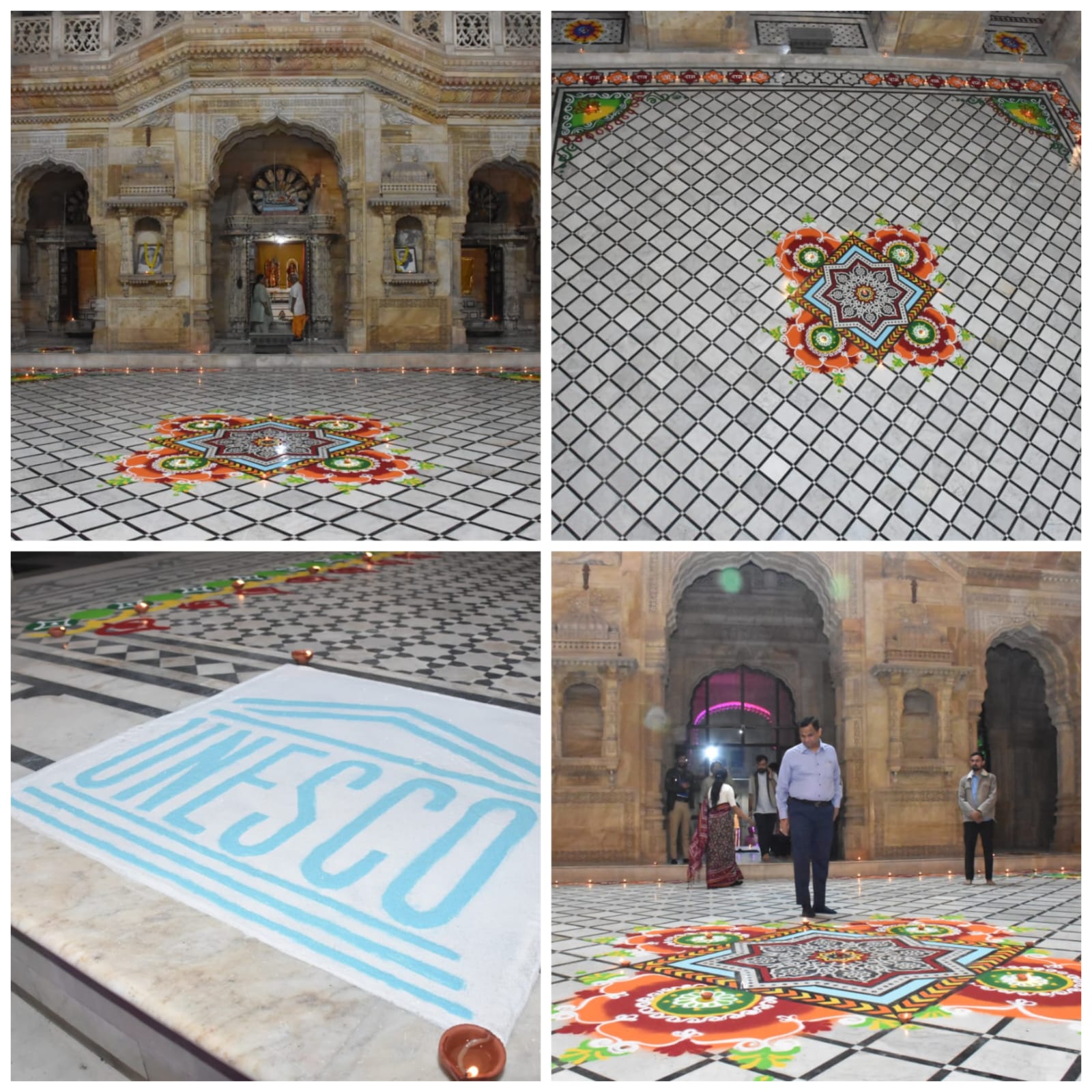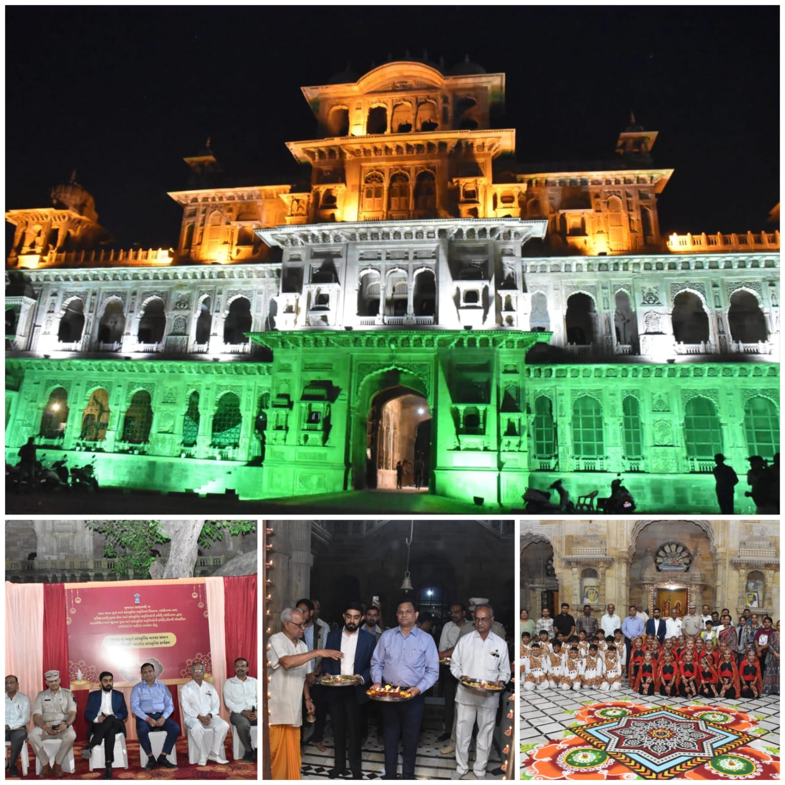મોરબી: ભારતીય સંસ્કૃતિમાં જે પર્વનું સવિશેષ મહત્વ છે તેવા દીપોત્સવને યુનેસ્કો દ્વારા ઇન્ટેજીબલ કલ્ચર હેરિટેજમાં સ્થાન મળતા દેશભરમાં હર્ષ સાથે ઉજવણી કરવામાં આવી રહી છે ત્યારે મોરબીની ઐતિહાસિક ધરોહર એવા મણીમંદિર ખાતે જીલ્લા યુવા વિકાસ અધિકારીની કચેરી તેમજ સમગ્ર જીલ્લા વહીવટી તંત્ર દ્વારા ગૌરવશાળી ક્ષણને વધાવી લઈ મોરબી જીલ્લા કલેકટર કે.બી. ઝવેરી તથા મોરબી મહાનગરપાલિકાના કમિશ્નર સ્વપ્નિલ ખરે સહિતના ઉચ્ચ અધિકારીઓની ઉપસ્થિતિમાં વિશેષ કાર્યક્રમનું આયોજન કરવામાં આવ્યું હતું. આ ઉજવણીમાં અનેરા ઉત્સાહ સાથે ડિસેમ્બરમાં દિવાળી ઉજવાતી હોય એવા ભાવ સાથે મણીમંદિરમાં ૫ હજાર દીવડાઓ પ્રગટાવવામાં આવ્યા હતા તથા મણિમંદિરના મહેલ પર તિરંગાનો રોશની શણગાર પણ કરવામાં આવ્યો હતો. મણીમંદિરમાં દિવાળીના પર્વમાં કરવામાં આવે એ રીતે ઠેર ઠેર રંગોળીઓ પણ કરવામાં આવી હતી.