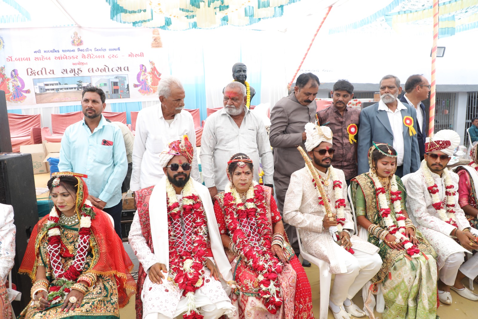 ડોક્ટર બાબા સાહેબ આંબેડકર ચેરીટેબલ ટ્રસ્ટ દ્વારા મોરબીના રોહીદાસ પરા પાછળ વિજયનગર ખાતે ૨૦૦૧ થી ડો. બાબાસાહેબ આંબેડકર પ્રાથમિક વિદ્યાલય કાર્યરત છે. જેમાં ધોરણ એક થી આઠ ના ૨૪૦ વિદ્યાર્થીઓ અભ્યાસ કરી રહ્યા છે. જેમના શિક્ષણની સગવડતા વધારવાના હેતુ સાથે નવી માધ્યમિક શાળા ધોરણ ૯ અને ૧૦ નું આગામી વર્ષમાં શરૂ કરવાનું આયોજન કરવામાં આવ્યું છે. જેના ભાગરૂપે નવી બિલ્ડીંગના લાભાર્થે દ્વિતીય સમુહ લગ્નનું આયોજન કરવામાં આવ્યું હતું. જે પ્રસંગમાં મોરબી જિલ્લા પંચાયત પ્રમુખ હંસાબેન પારઘી, દેવકણભાઈ આદ્રોજા, ગંગા સ્વરૂપ સહાય સમિતિ, કે.જી. કુંડારિયા જાણીતા ઉદ્યોગપતિ, મહંત સીતારામ બાપુ કષ્ટભંજન હનુમાન મોલડી સહિત શિક્ષણ દાતાઓ તેમજ સમૂહ લગ્નોત્સવના મુખ્ય દાતાઓ ઉપસ્થિત રહ્યા હતા.