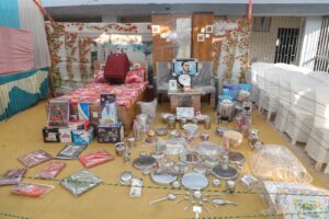 તમામ નવયુગલોને ઘરવખરીની તમામ જીવન જરૂરિયાતોની ૮૩થી વધુ વસ્તુઓ સાથે ચાંદીના સાંકડા અને સોનાની નાકની ચૂક દાન સ્વરૂપે આપવામાં આપવામાં આવી હતી. જ્યારે શિક્ષણ દાતા તરીકે દેવકણભાઈ આદ્રોજા દ્વારા નવા નિર્માણ નિમિતે કુલ બિલ્ડિંગમાં એક વર્ગખંડના દાતા તરીકે દાન આપ્યું હતું. જ્યારે ટ્રસ્ટના મંત્રી કેશવ લાલ રામજીભાઈ ચાવડા દ્વારા પ્રિન્સિપાલ ઓફિસ નિર્માણનું દાન આપ્યું હતું. જ્યારે ઉદ્યોગપતિ કે જી કુંડારિયા દ્વારા સ્ટાફ રૂમ નિર્માણ કરી દેવાની જાહેરાત કરવામાં આવી હતી. જે શુભ પ્રસંગે ભોજનના દાતા તરીકે જમનાદાસ મોતીભાઈ હિરાણી હરિહર અન્ન ક્ષેત્ર તરફથી ૧૭૦૦ થી વધુ મહેમાનોને ભોજન કરાવ્યુ હતું. તેમજ નવનિર્મિત બિલ્ડિંગના નિર્માણ અર્થે મોટી સંખ્યામાં દાતાઓએ દાનની ગંગા વહાવી હતી. જ્યારે સમૂહ લગ્નોત્સવના મુખ્ય દાતા તરીકે ભરતભાઈ દુદાભાઈ પરમાર, સુરેશકુમાર કેશવલાલ ચાવડા, એડવોકેટ હસમુખભાઈ સોલંકી, મોતીભાઈ અમરાભાઇ પરમાર, સ્વર્ગસ્થ જીવાભાઇ રવજીભાઈ મકવાણા પરિવાર, દ્રિસના નંદની પારીઆ, દિનેશભાઈ ખેંગારભાઈ પરમાર, કેશુભાઈ કે સાગઠીયા તેમજ મુસ્કાન વેલ્ફેર સોસાયટી સહિતના દાતાઓએ તેમની યથાશક્તિ મુજબ તમામ ૧૧ કન્યાઓને કરિયાવર આપ્યો હતો. જેમનું ટ્રસ્ટ દ્વારા તમામ દાતાઓને સીલ આપી સન્માનિત કરવામાં આવ્યા હતા. ત્યારે ડોક્ટર બાબા સાહેબ આંબેડકર ચેરીટેબલ ટ્રસ્ટના પ્રમુખ જમનાદાસભાઈ ટપુભાઈ પરમાર અને મંત્રી કેશવલાલ ચાવડા દ્વારા શિક્ષણ પ્રેમી દાતાઓને શિક્ષણના લાભાર્થે દાન આપવા માટે 99258 01260 પર સંપર્ક કરવા અપીલ કરી હતી…..