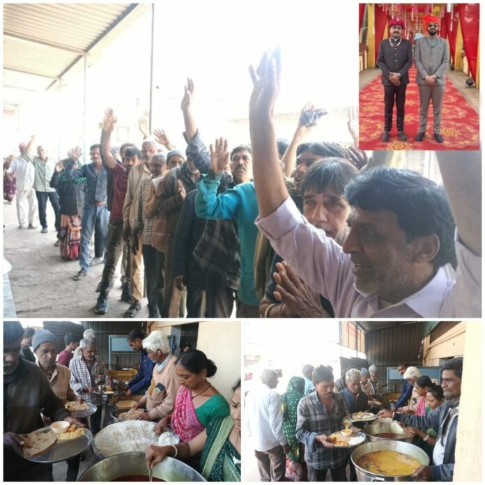 મોરબી જલારામ ધામ ખાતે દરરોજ બપોરે અને સાંજે સદાવ્રત દ્વારા જરૂરિયાતમંદ લોકોને ભોજન આપવામાં આવે છે. આ સેવાયજ્ઞને વધુ અર્થપૂર્ણ બનાવતા મોરબી ક્ષત્રિય સમાજના અગ્રણી રઘુવીરસિંહજી કરણસિંહજી ઝાલા (R.K.) મોટા ખીજડીયાવાળા પરિવારે કુંવર દેવમસિંહજી ઝાલાના લગ્ન પ્રસંગે આખો દિવસ મહાપ્રસાદનું આયોજન કર્યું હતું. આ પ્રસંગે લોકોએ પ્રસાદનો લાભ લીધો અને ઝાલા પરિવારની આ માનવસેવાની પહેલને બિરદાવી હતી. લગ્ન જેવા આનંદ પ્રસંગને સેવાકાર્ય સાથે જોડીને સમાજને નવી દિશા દર્શાવવાનો પ્રયાસ કરવામાં આવ્યો હોવાનું આગેવાનો દ્વારા જણાવાયું હતું. ઝાલા પરિવારના મોભી કરણસિંહજી ધીરૂભા ઝાલા, રઘુવીરસિંહજી ઝાલા (R.K.), કીશોરસિંહજી ઝાલા, દિલાવરસિંહજી ઝાલા અને કુંવર દેવમસિંહજી ઝાલા સહિત પરિવારજનોને મોરબી જલારામ ધામના ગીરીશભાઈ ઘેલાણી, હરીશભાઈ રાજા સહિત અનેક આગેવાનો દ્વારા શુભેચ્છા પાઠવવામાં આવી હતી.