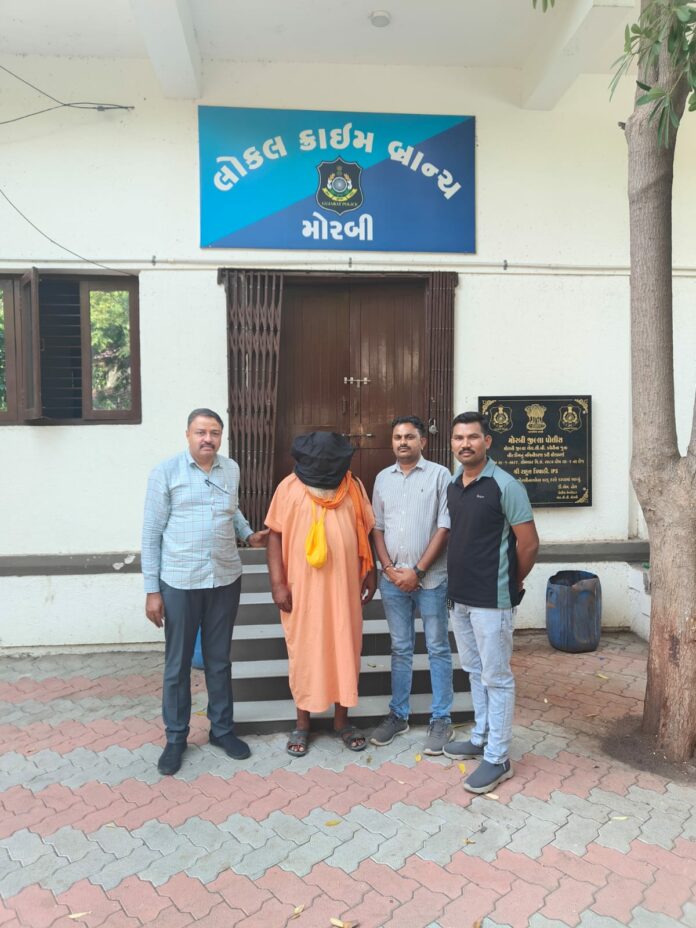 મોરબી શહેર પોલીસ સ્ટેશનમાં તા. ૦૭/૦૫/૨૦૦૨ના રોજ નોંધાયેલ ફરિયાદ મુજબ, મોરબીના ત્રાજપર ખારી વિસ્તારમાં રહેતા ચંપાબેન અશોકભાઈ વરાણીયા ઉવ.૬૦ને આરોપીએ કપડાં વડે ગળું દબાવી મોત નીપજાવ્યું અને તેમની પાસેના સોનાના દાગીના તથા ચાંદીના કડલા લૂંટી નાસી ગયો હતો. બનાવ બાબતે મોરબી પોલીસે આરોપીઓ વિરુદ્ધ લૂંટ વિથ મર્ડરની કલમો હેઠળ ગુનો નોંધી તપાસ શરૂ કરી હતી. તપાસ દરમિયાન આરોપીઓ તરીકે (૧)સોનલબેન ઉર્ફે ધર્માવતી પરમાર રહે. વડોદરા અને (૨)પ્રેમસિંહ ઉર્ફે ગુડ્ડુ સરમનસિંહ બઘેલ રહે. રાજસ્થાનના નામ ખુલ્યા હતા. જે બાદ પોલીસે અનેક પ્રયાસો છતાં બંને આરોપીઓ ફરાર રહ્યા હતા, જેના કારણે કોર્ટ દ્વારા તેમની સામે સી.આર.પી.સી. કલમ ૭૦ હેઠળ વોરંટ અને ક્લમ ૮૨(૨) હેઠળ ફરાર જાહેર કરવાનો આદેશ આપવામાં આવ્યો હતો. ૨૩ વર્ષ બાદ આરોપીને પકડી લેવામાં મળેલી સફળતામાં મોરબી એલ.સી.બી./પેરોલ ફર્લો ટીમે ખાનગીરાહે મળેલ માહિતી તથા ટેકનિકલ માહિતીના આધારે તપાસ શરૂ કરી હતી. પોલીસ ટીમને માહિતી મળી કે આરોપી પ્રેમસિંહ ઉર્ફે ગુડ્ડુ ઉત્તરપ્રદેશ રાજ્યના મથુરા જીલ્લાના છાતા તાલુકાના તરોલી જાનુબી ગામની સીમમાં આવેલા હનુમાન મંદિરમાં સાધુ તરીકે રહે છે. જેથી મોરબી એલ.સી.બી. અને પેરોલ ફર્લો સ્ક્વોડ ટીમે મથુરા પહોંચી સ્થાનિક પોલીસની મદદથી સાધુના વેશમાં મંદિરમાં પૂજા કરતા આરોપી પ્રેમસિંહ ઉર્ફે ગુડ્ડુ સરમનસિંહ બઘેલ મૂળ રહે.અવાર તા.કુમ્હેર જી.ભરતપુર (રાજસ્થાન) હાલ રહે.હનુમાન મંદિર તરોલી જાનુબી ગામની સીમ છાતા જી.મથુરા(ઉ.પ્ર.) વાળાને ઝડપી લઈ તેને હસ્તગત કરી મોરબી ખાતે લાવી સીટી પોલીસ મથકમાં સોંપી આપેલ છે.