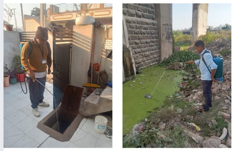 મોરબી મહાનગરપાલિકાની મેલેરિયા શાખા દ્વારા મચ્છરજન્ય રોગોના નિયંત્રણ માટે ઘર મુલાકાત, પાણી ભરેલા પાત્રોની તપાસ, પોરાનાશક દવાઓનો ઉપયોગ તેમજ ખુલ્લી ગટર અને વોકળામાં દવા છંટકાવ તથા ડસ્ટીંગ જેવી કામગીરી હાથ ધરવામાં આવી હતી.