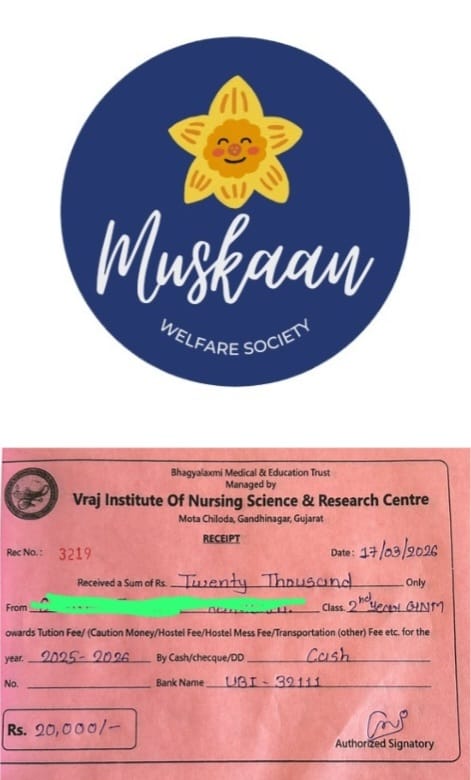 મોરબીની મુસ્કાન વેલફેર સોસાયટીએ દત્તક લીધેલી નર્સિંગની વિદ્યાર્થિનીની બીજા વર્ષના સેમેસ્ટરની ફી ચૂકવીને તેના અભ્યાસને સતત સહયોગ આપી વિદ્યાર્થીઓમાં શિક્ષણ પ્રત્યે આત્મવિશ્વાસ અને ઉત્સાહ વધારવાનું ઉત્તમ ઉદાહરણ પૂરું પાડ્યું છે.