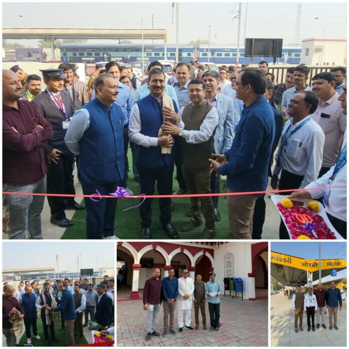 મોરબી રેલ્વે સ્ટેશન ખાતે નવા બનેલા ટ્રેડ સેન્ટરનું આજે ભવ્ય ઉદ્ઘાટન કાર્યક્રમ યોજાયો હતો. આ પ્રસંગે વેસ્ટર્ન રેલ્વેના જનરલ મેનેજર વિવેક કુમાર ગુપ્તા મોરબી મુલાકાતે આવ્યા હતા. આ અવસરે મોરબી સિરામિક એસોસિયેશનના પ્રમુખ હરેશભાઈ બોપલીયા, સંદીપ કુંડારીયા, અજયભાઈ મારવણીયા તથા મોરબી ચેમ્બર ઓફ કોમર્સના પ્રમુખ જયંતીભાઈ પટેલે ઉદ્યોગ જગત સામે ઊભા થતા મહત્વના પ્રશ્નો અંગે જનરલ મેનેજર સમક્ષ સચોટ અને મજબૂત રજૂઆત કરી હતી.