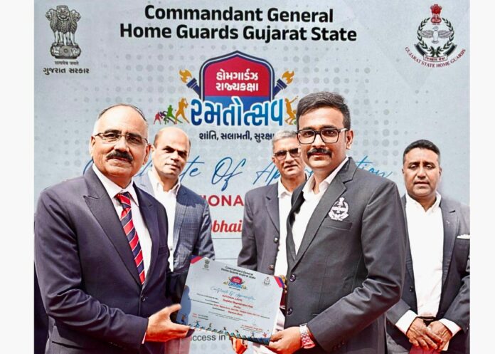 ગાંધીનગર ખાતે યોજાયેલા રાજ્ય કક્ષાના હોમગાર્ડઝ અને સિવિલ ડિફેન્સ રમતોત્સવ 2026માં મોરબીનું નામ ગૌરવભેર ઉજાગર થયું છે. મોરબી જિલ્લાના હોમગાર્ડઝ કમાન્ડન્ટ દીપ પટેલે રાષ્ટ્રીય કક્ષાએ ઉત્કૃષ્ટ પ્રદર્શન કરીને ખાસ સિદ્ધિ હાંસલ કરી છે.