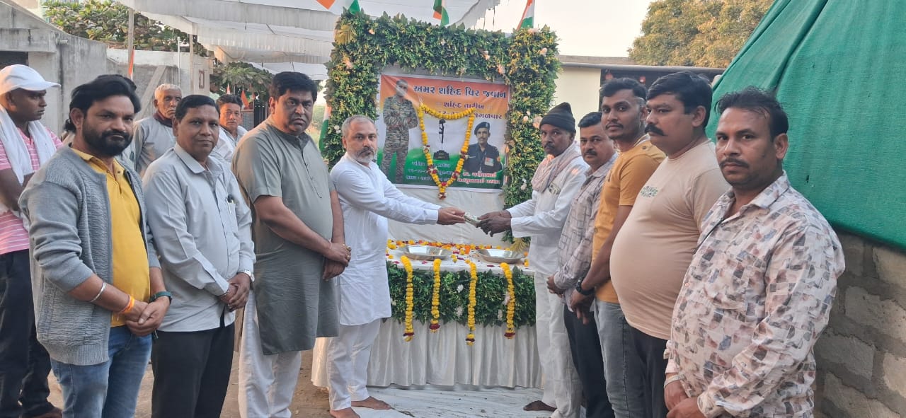 મોરબીના ભારતીય સેનાના જવાન ગણેશભાઈ પરમાર ફરજ દરમિયાન શહીદ થયા હતા. આથી આ શહીદ જવાનની અંતિમ ક્રિયામાં મોટી સંખ્યામાં લોકોએ જોડાઇને તેમની વીરગતિને નત મસ્તક વંદન કર્યા હતા, ત્યારે આજ રોજ સ્વ. પુરીબેન લાખાભાઈ જારીયાની 11 મી માસિક પુણ્યતિથિએ મોરબી શહેર ભાજપના પૂર્વ પ્રમુખ લાખાભાઈ મગનભાઈ જારીયા તરફથી રૂ.1,00,000 શહીદ પરિવારને રોકડા અર્પણ કરવામાં આવ્યા હતા. તેમજ શહિદ ગણેશભાઈના પિતા મનસુખભાઈ પરમારને રૂબરૂ મોરબી શહેર ભાજપના મહામંત્રી ભુપતભાઈ જારીયાએ પુષ્પાંજલિ અર્પી આર્થિક સહકાર તેમજ સાંત્વના આપી હતી.