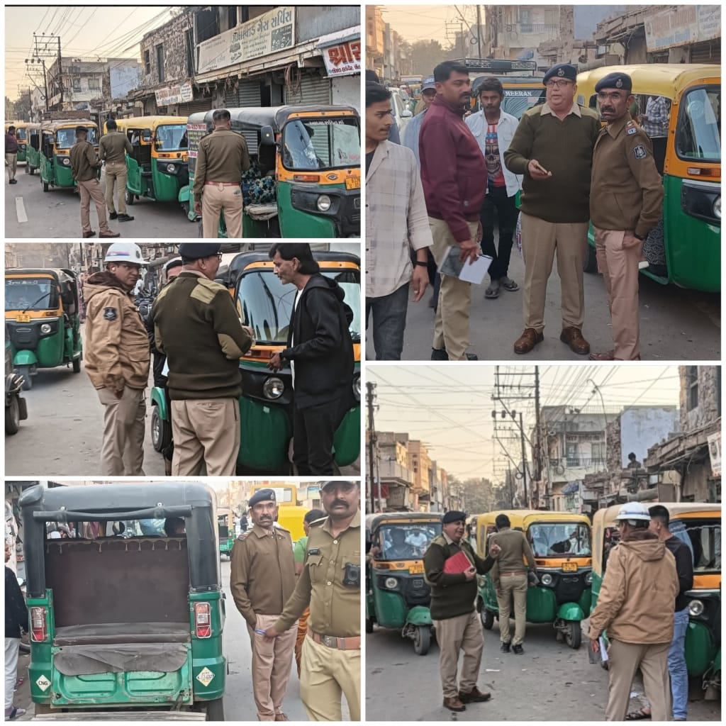 મોરબીમાં નગરદરવાજા આસપાસ ટ્રાફિક નિયમભંગ કરનાર રીક્ષા ચાલકો સામે પોલીસની લાલ આંખ