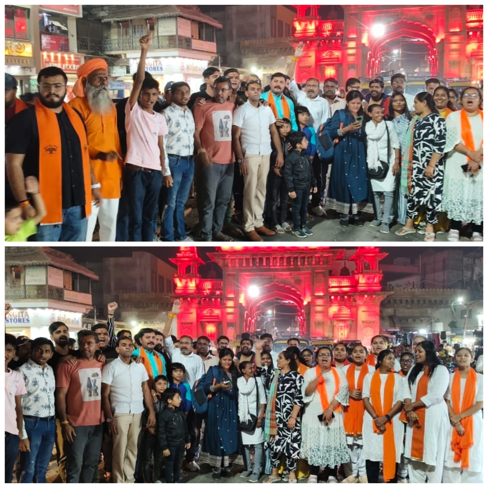 ગઈકાલ તા. ૨૫/૧૧/૨૦૨૫ના રોજ અયોધ્યા સ્થિત શ્રી રામજન્મભૂમિ તીર્થક્ષેત્ર ખાતે ભગવાન શ્રી રામ મંદિરના શિખર ઉપર ધર્મ ધ્વજા લહેરાવવામાં આવી હતી. હિંદુ સમાજના ૫૦૦ વર્ષના સંઘર્ષને પૂર્ણ કરી રામમંદિર નિર્માણના આ ઐતિહાસિક અવસરને વિશ્વભરમાં હર્ષ અને ઉત્સાહ સાથે ઉજવવામાં આવી રહ્યો છે. ધર્મ ધ્વજાના આ વિજયોત્સવને હિંદુ સમાજે ઐતિહાસિક દિવસ તરીકે નિમિત્ત બનાવી ભારતીય સંસ્કૃતિ અને આધ્યાત્મિક ગૌરવનું પ્રતિક ગણાવ્યું છે. આ ઐતિહાસિક ઘટના અનુસંધાને મોરબી વિશ્વ હિંદુ પરિષદ, બજરંગ દળ, દુર્ગાવાહિની તેમજ માતૃશક્તિ દ્વારા આજરોજ ૨૬/૧૧/૨૦૨૫, બુધવારના રોજ સાંજે ૭ થી ૮ વાગ્યા સુધી નગરદરવાજા ચોક ખાતે આનંદોત્સવ યોજાયો હતો. આ પ્રસંગે ફટાકડાની આતશબાજી દ્વારા આનંદની ઉજવણી કરવામાં આવી અને પ્રસાદ સ્વરૂપે તમામના મોઢા મીઠા કરાવવામાં આવ્યા હતા. ત્યારે આ કાર્યક્રમમાં મોટી સંખ્યામાં શ્રદ્ધાળુઓ તેમજ હિંદુ સમાજના અનેક આગેવાનો ઉપસ્થિત રહ્યા હતા.