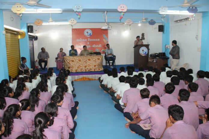 તપોવન વિદ્યાલય ખાતે આજરોજ જિલ્લા શિક્ષણ અધિકારી કચેરી મોરબી તેમજ પોલીસ અધિક્ષકની કચેરી-મોરબી દ્વારા નશાકારક બાબત તેમજ માર્ગ સલામતી અંગેનો માર્ગદર્શન સેમિનાર યોજાયો હતો. જેમાં RTO ઇન્સ્પેક્ટર મેવાડા, ટ્રાફિક ઇન્સ્પેક્ટર દિલીપ ઠાકર, SOG કમલેશ ખાંભલીયા, જિલ્લા શિક્ષણાધિકારી કચેરીમાંથી AEI દિપલબેન મકવાણા ઉપસ્થિત રહ્યા હતા. જેમના દ્વારા વિદ્યાર્થીઓને રોડ સેફટી, નશામાં વાહન ન ચલાવવું, રોંગ સાઈડમાં વાહન ન ચલાવવાનું, વાહન ધીમે ચલાવવું, લાઈસન્સ વગર વાહન ન ચલાવવું જોઈએ વગેરે મુદ્દે ધોરણ:-9 થી 12 ના વિદ્યાર્થીઓને માગદર્શન આપવામાં આવ્યું હતું. જે બદલ શાળાના ચેરમેન અશોકભાઈ રંગપરિયા, પ્રિન્સિપાલ નરેશભાઈ સાણજા તથા સંચાલક દીપ્તિબેન તેમજ તપોવન શાળા ખાતે આવેલ દરેક અધિકારીઓનો આભાર વ્યક્ત કર્યો હતો .