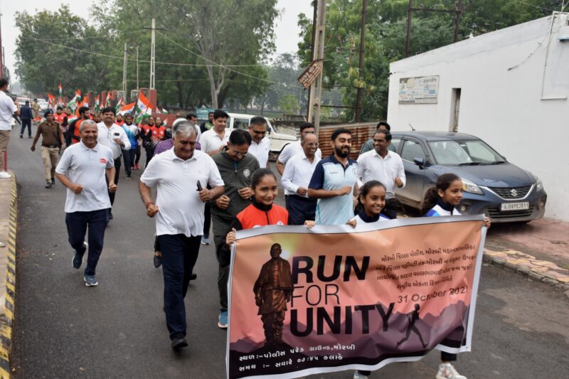 એકતા દિવસની રાષ્ટ્ર વ્યાપી ઉજવણીની સાથે ગુજરાત રાજ્યમાં પણ અનેકવિધ આયોજનો કરવામાં આવ્યા છે, જેના ભાગરૂપે ૩૧ ઓક્ટોબર, એકતા દિવસે સરદાર વલ્લભભાઈ પટેલને શ્રદ્ધાંજલિ પાઠવવા મોરબીમાં પોલીસ પરેડ ગ્રાઉન્ડથી સરદાર પટેલના સ્ટેચ્યુ, નવા બસ સ્ટેન્ડ સુધી રન ફોર યુનિટી (દોડ) યોજાઈ હતી. મહાનુભાવોએ લીલી જંડી બતાવી આ રન ફોર યુનિટીને પ્રસ્થાન કરાવી હતી. ઉપસ્થિત સૌએ એકતા શપથ ગ્રહણ કરી સરદાર પટેલને શ્રદ્ધાંજલિ પાઠવી હતી. આ દોડમાં મોરબી મહાનગરપાલિકાના કમિશ્નર સ્વપ્નિલ ખરે, જિલ્લા પોલીસ અધિક્ષક મુકેશ પટેલ, ઇન્ચાર્જ જિલ્લા વિકાસ અધિકારી અને જિલ્લા ગ્રામ વિકાસ એજન્સીના નિયામક નવલદાન ગઢવી, નાયબ વન સંરક્ષક ડો.સુનિલ બેરવાલ, ઇન્ચાર્જ નિવાસી અધિક કલેક્ટર અને નાયબ કલેક્ટર ઉમંગ પટેલ, અગ્રણી જયંતીભાઈ રાજકોટિયા સહિત પદાધિકારીઓ તથા વહીવટી તંત્રના અધિકારીઓ અને કર્મચારીઓ, પોલીસના જવાનો, DLSS ના રમતવીરો તથા નગરજનો જોડાયા હતા.