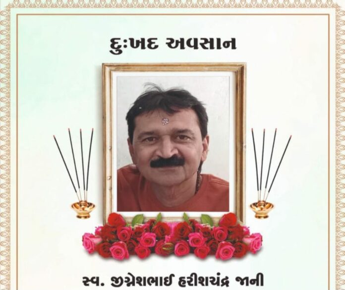મોરબી નિવાસી જીગ્નેશભાઈ હરીશચંદ્ર જાની(દૂરદર્શન કેન્દ્ર) જેઓ શિવમ જાનીના પિતા અને વિમલભાઈ જાનીના મોટાભાઈનું માગશર શુક્લ નોમને તા.૨૯/૧૧/૨૦૨૫ના રોજ દુઃખદ અવસાન થયું છે. સદગતનું બેસણું ૦૧/૧૨/૨૦૨૫ ને સોમવારે તેમના નિવાસ સ્થાન નવલખી રોડ રામનગર મોરબી ખાતે રાખવામાં આવ્યું છે