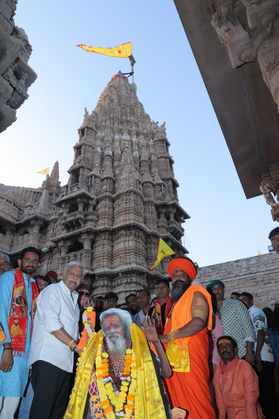 મંદિર ચોકમાં ભક્તો નાચ્યા-રમ્યા અને સમગ્ર વાતાવરણ ભક્તિના રંગે રંગાઈ ગયું હતું. દેવભુમિની બજારો “જય દ્વારકાધીશ” અને “જય મહાકાળી માતાજી”ના ગગનભેદી નારાઓથી ગુંજી ઉઠી હતી. હજારો ભાવિકોએ દ્વારકાધીશના દર્શન તેમજ ધ્વજાના દર્શનનો અદ્ભુત લાભ લીધો હતો. આ ધ્વજારોહણ કાર્યક્રમમાં શ્રી કીરીટભાઈ ગણાત્રા કાકા (અકિલા સાંધ્ય દૈનિક)ની વિશેષ ઉપસ્થિતિ રહી હતી. આ ઉપરાંત અનેક નાંમકિત રાજકીય સામાજિક અને ધાર્મિક સંગઠનોના ગણમાન્ય સદસ્યો ઉપસ્થિત રહ્યા આ પદયાત્રા અને ધ્વજારોહણથી ભક્તોમાં અપાર ઉત્સાહ અને દિવ્ય ભક્તિનો માહોલ જોવા મળ્યો.