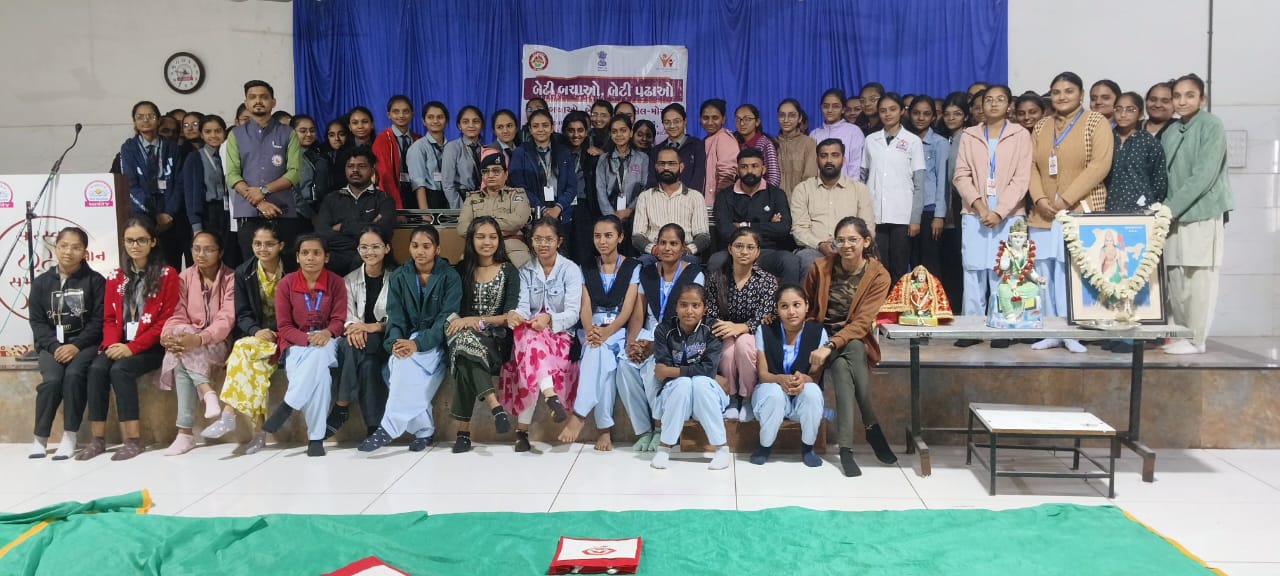 મોરબીના લક્ષ્મીનગર ગામે આવેલ આર્યતેજ ગ્રુપ ઑફ કોલેજ ખાતે ગત તા. 22 ડિસેમ્બરના રોજ બેટી બચાવો બેટી પઢાઓ કાર્યક્રમનું આયોજન કરવામાં આવ્યું હતું. જેમાં સંચાલક દ્વારા ઉપસ્થિત મહેમાનો અને વિદ્યાર્થીઓનું સ્વાગત કરીને કાર્યક્રમના હેતુ વિશે સંક્ષિપ્ત માહિતી આપવામાં આવી હતી. આ કાર્યક્રમમાં જેન્ડર સ્પેશિયાલિસ્ટ મહિલા અને બાળ અધિકારી કચેરીમાં ફરજ બજાવતા રાજદીપ ભાઈ પરમાર દ્વારા સ્વાગત ભાષણ આપ્યું હતું. ત્યારબાદ ડિસ્ટ્રિક્ટ કોર્ડીનેટર મહિલા અને બાળ અધિકારી કચેરી મોરબીમાં ફરજ બજાવતા મયુરભાઈ સોલંકીએ સાઇબર ક્રાઇમ અને સોશિયલ મીડિયા અવેરનેસ બાબતે સમજાવ્યું હતું. ત્યારબાદ મહિલા પોલીસ ઇન્સ્પેક્ટર મોરબીના પી.એચ લગધીરકા દ્વારા મહેમાનો અને મેડિકલ એન્ડ પેરા મેડિકલ વિદ્યાર્થી બહેનોને બેટી બચાવો બેટી પઢાવો વિશે સમજાવ્યું હતું. જેમાં સેલ્ફ ડિફેન્સ કઈ રીતે કરવું, કોઈ પ્રોબ્લેમ માંથી કેવી રીતે બહાર આવવું, 118 હેલ્પલાઇન નંબર વિશે સમજાવ્યું, તેમજ મહિલા પોલીસનું મહત્વ સમજાવ્યું હતું. ત્યારબાદ કોલેજના ટ્રસ્ટી ડોક્ટર મિલન વ્યાસ દ્વારા કાર્યક્રમને સમાપન આભાર વિધિ સાથે પૂરું કરવામાં આવ્યું હતું. આ કાર્યક્રમનો હેતુ વિદ્યાર્થી બહેનોને કેવી રીતે સેલ્ફ ડિફેન્સ કરવું તે સમજાવવાનો હતો.