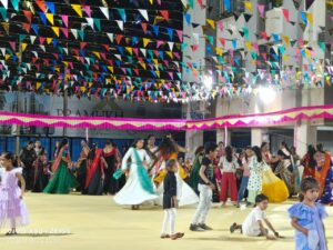 મોરબીની સંસ્કાર રેસિડેન્સી ક્રિષ્ના સ્કૂલ શેરીની પ્રાચીન નવરાત્રિમાં દરરોજ માતા-બહેનો ગરબે રમીને માતાજીની આરાધના કરે છે. ક્રિષ્ના સ્કૂલ શેરીમાં આવેલ સંસ્કાર રેસીડેન્સીમાં નવરાત્રી દરમિયાન પ્રાચીન ગરબીમાં રાસ ગરબાની રમઝટ જામે છે. ભારતીય પરંપરાગત વસ્ત્રોમાં માતા-બહેનો ગરબે ઘૂમી કરી માં જગદંબાની આરાધના કરે છે…