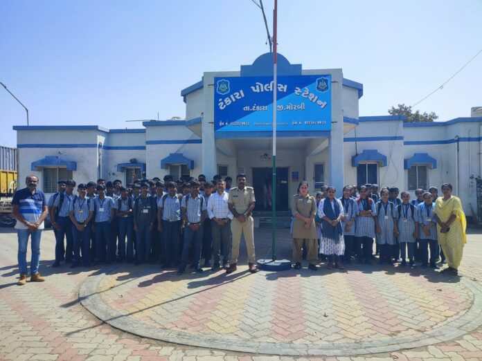 ટંકારા ખાતે ‘સુરક્ષા સેતુ સોસાયટી’ અને SPC (સ્ટુડન્ટ પોલીસ કેડેટ) પ્રોજેક્ટ અંતર્ગત વિદ્યાર્થીઓ માટે ખાસ શૈક્ષણિક કાર્યક્રમ યોજાયો હતો. જેમાં એમ.ડી. વિદ્યાલયના ધોરણ 11ના વિદ્યાર્થીઓએ પોલીસ સ્ટેશનની મુલાકાત લઈ પોલીસની કામગીરીને નજીકથી જાણી હતી.