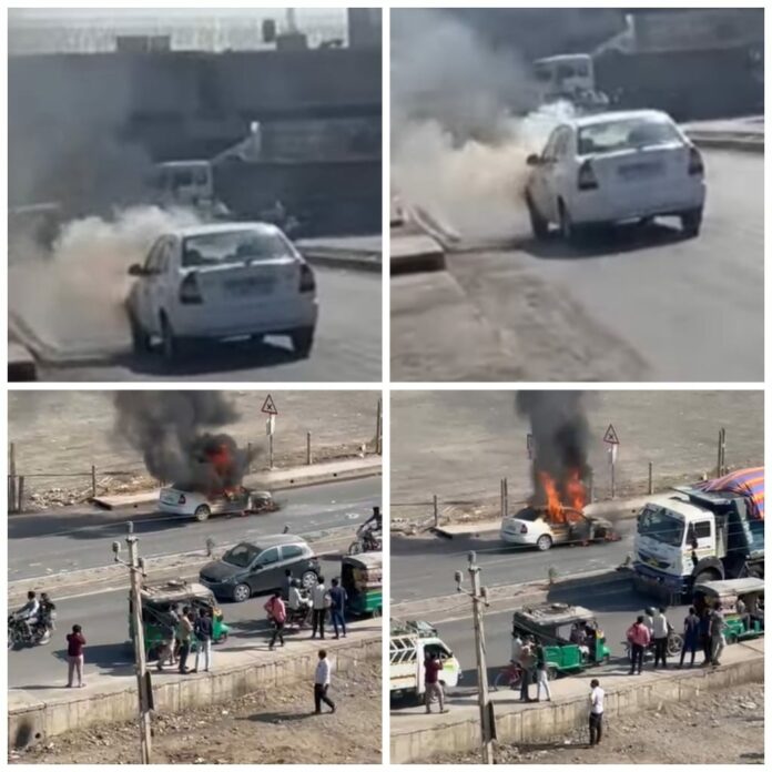 મોરબીના મહેન્દ્રનગર ચોકડી નજીક પીપળી રોડ પર બજરંગ મોબાઈલની સામે એક કારમાં અચાનક આગ લાગી હતી. જો કે ફાયર ટીમે સમયસર આગ પર કાબુ મેળવી લીધો હતો. સદનસીબે કોઈ જાનહાની થઈ નથી.