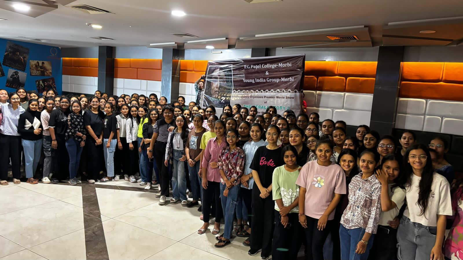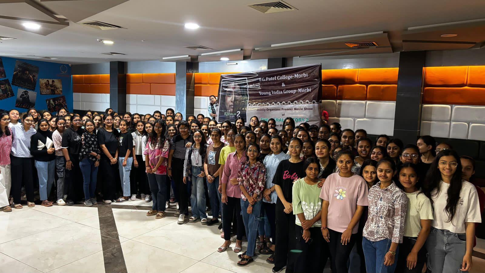 આંતરરાષ્ટ્રીય મહિલા દિવસ પખવાડિયાની ઉજવણીના ભાગરૂપે યુવતીઓમાં જાગૃતિ અને સચેતનતા વધે તેવા હેતુથી યંગ ઇન્ડિયા ગ્રુપ અને પી.જી. પટેલ કોમર્સ કોલેજ, મોરબીના સંયુક્ત ઉપક્રમે એક અર્થપૂર્ણ કાર્યક્રમનું આયોજન કરવામાં આવ્યું હતું. આ પ્રસંગે કોલેજમાં અભ્યાસ કરતી દીકરીઓ માટે ચર્ચાસ્પદ ફિલ્મ **“The Kerala Story 2”**નું વિશેષ પ્રદર્શન યોજાયું હતું. આ કાર્યક્રમમાં પી.જી. પટેલ કોમર્સ કોલેજના પ્રિન્સિપાલ રવિન્દ્રભાઈ ભટ્ટ પણ ઉપસ્થિત રહી કાર્યક્રમમાં જોડાયા હતા અને આવા જાગૃતિમૂલક કાર્યક્રમો યુવતીઓ માટે સમયોચિત અને મહત્વપૂર્ણ હોવાનું જણાવ્યું હતું.