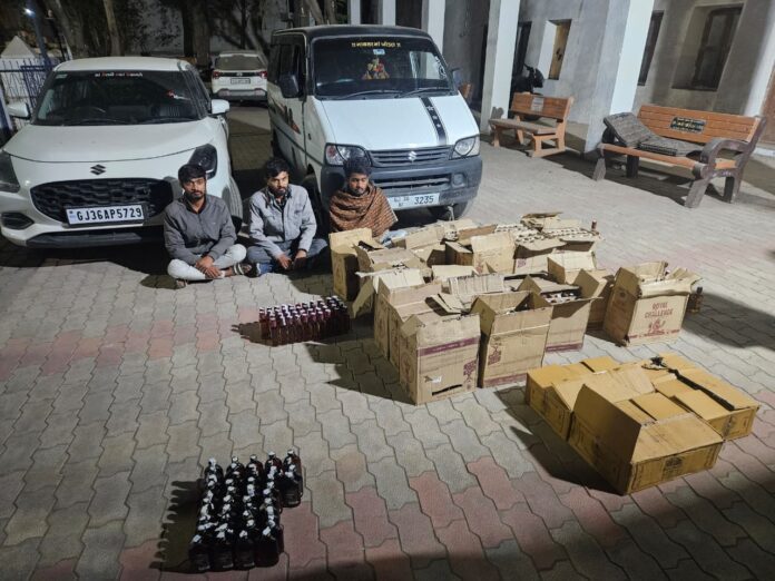 મળતી માહિતી અનુસાર, વાંકાનેર સીટી પોલીસ દ્વારા ગઈકાલે તા.૨૪/૦૧/૨૦૨૬ ના રોજ કોમ્બીંગ નાઇટ રાઉન્ડ યોજાઈ હતી. જે દરમ્યાન વાંકાનેર હરસિધ્ધી હોટલ પાસે રોડ ઉપરથી મારૂતી સ્વીફટ કાર તથા મારૂતી ઇકો કારમાથી ભારતીય બનાવટના પરપ્રાંતના વિદેશી દારૂની જુદી જુદી બ્રાન્ડની નાની મોટી ૪૭૨ બોટલોનાં કુલ રૂ.૩,૯૬,૮૫૦/- તથા અન્ય મુદામાલ મારૂતી સ્વીફટ કાર રૂ.૩,૦૦,૦૦૦/- તથા મારૂતી ઇકો કાર રૂ.૪,૦૦,૦૦૦/- તથા ૦૪ મોબાઇલ ફોન રૂ.૧૨,૫૦૦/- મળી કુલ રૂ.૧૧,૦૯,૩૫૦/- નો મુદામાલ પકડી પાડી દિપાલ મુકેશભાઇ સંખેસરીયા, બાદલ રસીકભાઇ કાંજીયા તથા ઇન્દ્રજીત રાજુભાઇ ગોસ્વામીની અટકાયત કરવામાં આવી છે. તેમજ હરદીપભાઇ કાઠી ફરાર થઇ જતા તેને વોન્ટેડ જાહેર કરી તમામ આરોપીઓ વિરુદ્ધ વાંકાનેર સીટી પોલીસ સ્ટેશનમાં પ્રોહીધારા હેઠળ ગુનો નોંધી કાયદેસરની કાર્યવાહી હાથ ધરવામાં આવી છે.